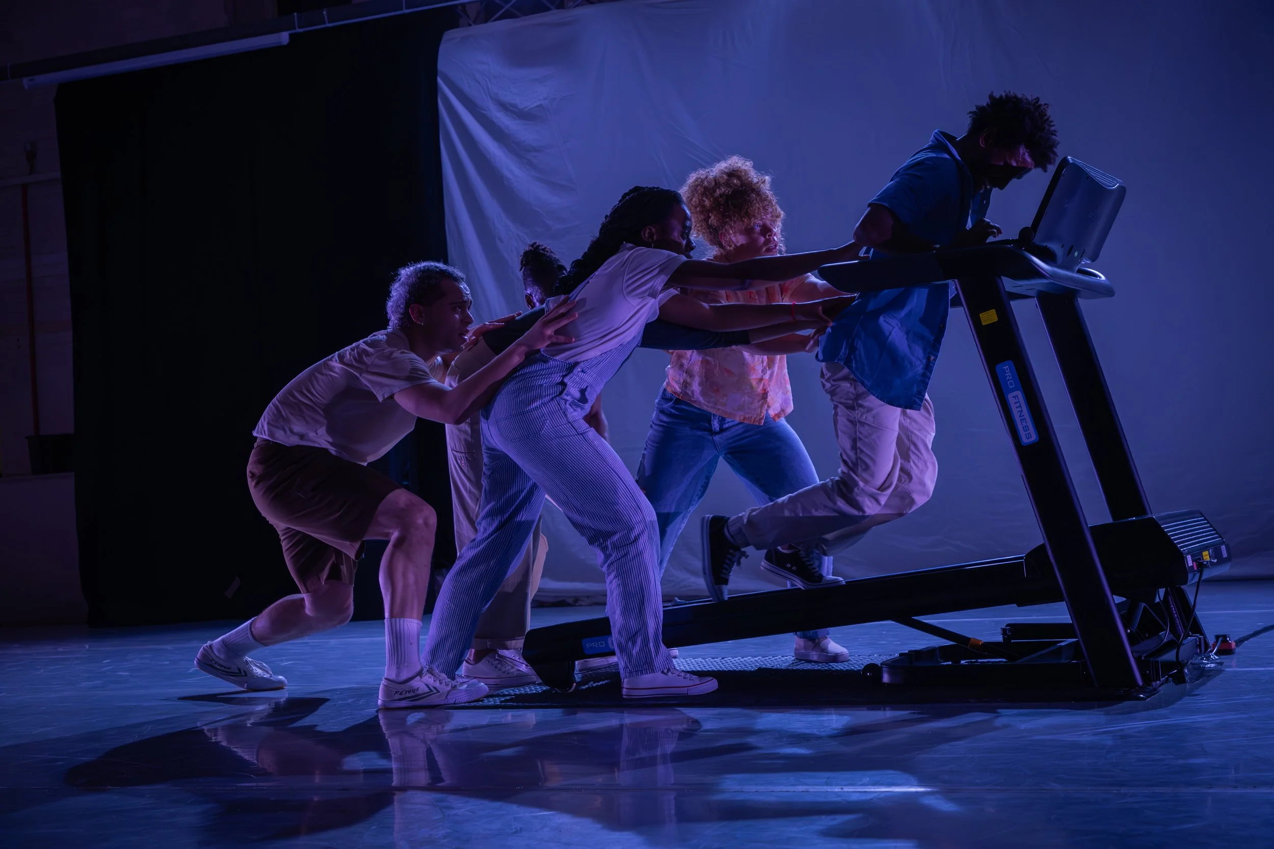 TREAD is an energetic and vigorous 30-minute contemporary dance production for outdoor and alternative performance spaces that uses the richness of repetition on a running machine in order to stimulate thinking around our perceptions of the Black performing body.
